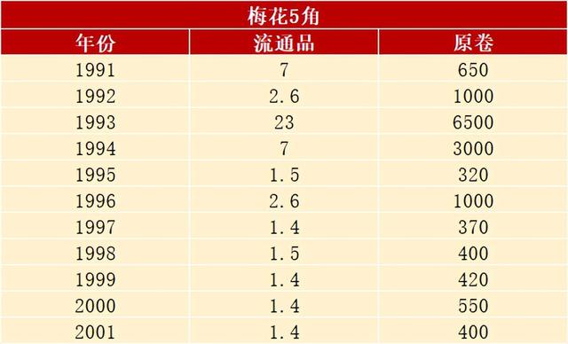 百科網簡單整理了各年份的表現,供大家進行參考。 還有精制幣從91年到00年,梅花5角每年還發行了少量的精制幣。 它們已經擁有了更高的收藏價值。
