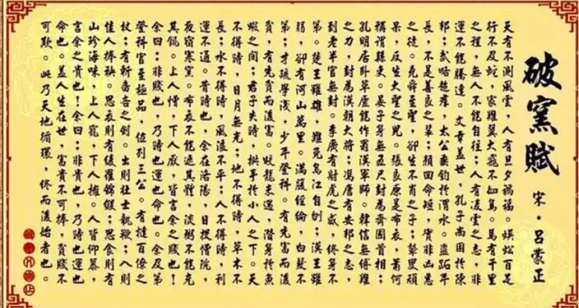 《破窯賦》簡介 《破窯賦》,又名《寒窯賦》。此賦是作者為了勸誡太子而創作的。這篇文章,雖然內容短小,但是卻包含了無窮智慧,聰明的太子一下就懂得其中的道理。據說太子讀過此文后,一改常態,常虛心向他人請教。 《破窯賦》賞析 《破窯賦》透出的是人生命運和天地自然變化循環的思想,文章以自己從凄慘到富貴的經歷,列舉了自古以來歷史上諸多名人經歷的各種命運和磨難,擺事實講道理,來說明這世界人生命運的起起落落。 《破窯賦》作者簡介 呂蒙正,太平興國二年(公元977年)丁丑科狀元,授將作監丞,通判升州。后三次登上相位,封許國公,授太子太師。呂蒙正寬厚正直,對上遇禮敢言,對下則寬容有雅度。李昉被罷免宰相后,被任命為中書侍郎兼戶部尚書、同平章事、監修國史。(www.Ws46.com)