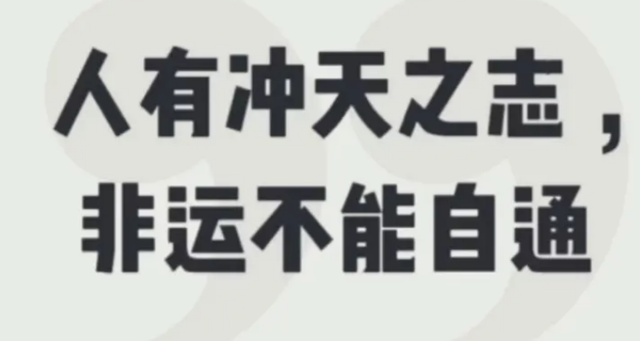 非運不能自通的意思:如果沒有氣運卻是不能實現自己的目標的。 非運不能自通出自《破窯賦》 原句是:馬有千里之程,無騎不能自往;人有沖天之志,非運不能自通。 意思是:好馬可以馳騁千里,但是沒有人駕馭是不能來回的。每個人都有遠大的志向,但是沒有機會是無法飛黃騰達的。