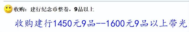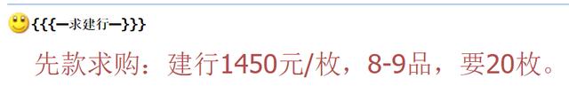 目前,8品到9品的建行幣,回收僅僅只有1450了。