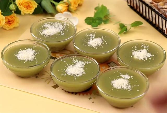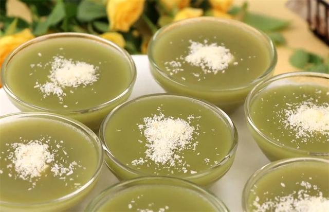 6.出鍋撒上適量椰蓉作為裝飾,這樣一道滿屋飄香的斑斕奶酪夾心缽仔糕就做好啦! |