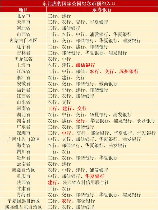 目前只有西藏地區確定有線下預約。大家也可以留意一下當地的公告。 需要強調的是,大家一定要牢記預約的開始時間,在過去幾次線上預約中,很多在1分鐘內預約一空,去晚了就沒了。 提前確定預約入口在新幣的預約中,各地預約銀行并不相同。 并且相對于上一次的預約,有多個地區的預約銀行發生了較大的變化。 百科網整理了各地的預約銀行,有變化的地區用紅字進行了標注。