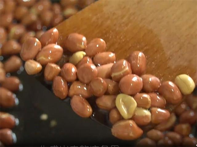 4.涼鍋涼油放入半碗花生米,全程用小火慢慢炒,炒到花生米顏色變深,等噼里啪啦的聲音消失就行了,先盛出來放涼備用。(www.ws46.com)