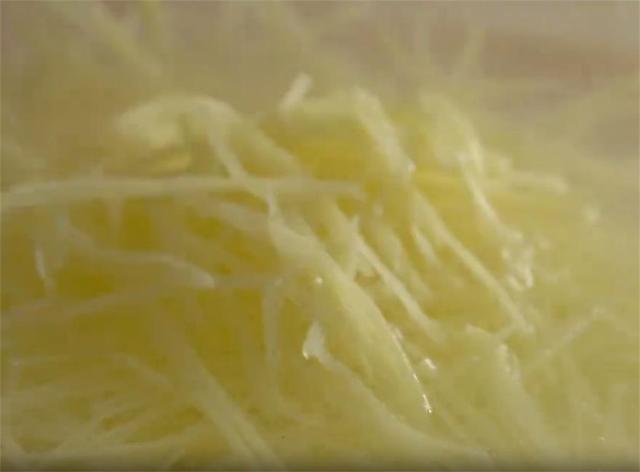 1.大家好,今天我們用黃瓜和土豆來做好吃的,首先把洗干凈的土豆去皮,直接用擦板擦成細(xì)絲,可以直接把土豆絲擦到清水里泡著,既能防止氧化,也能去一下表面的淀粉。