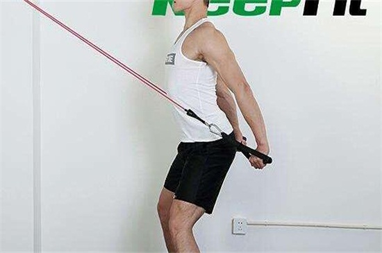 若是用彈力繩訓練臀大肌的時候,可將彈力繩的一端固定在一個較低的位置處,用右腳的腳踝固定住彈力繩的另一端,呼氣的時候將右腳稍微的抬起,保持在空中1~2秒左右,吸氣的時候還原之前的位置,之后換腿重復動作。 |