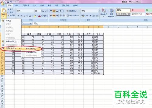 2.第二步,點擊如圖所示軟件左上角的開始,然后選擇粘貼,在選擇以圖片格式A下的復制圖片。