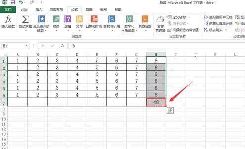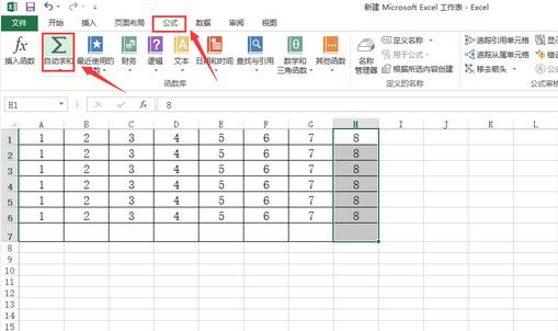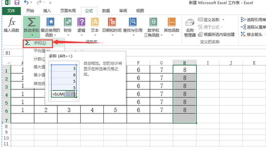 02選中求和的那一列數據及后面一格空白單元格(如圖求H列的和);
