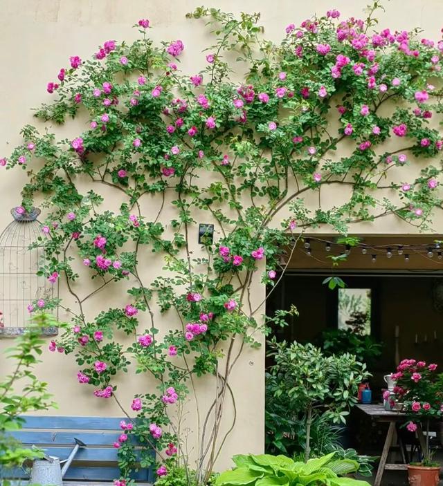 紫藤的花朵成穗開放,千萬朵花兒一同綻放,宛如紫色的瀑布傾瀉而下,壯觀而浪漫。而薔薇雖然花朵較小,但她的花色豐富多變,從深紅到淺粉,從潔白到金黃,應(yīng)有盡有。 在紫藤的映襯下,薔薇的花朵顯得更加?jì)善G欲滴。此外,在植株姿態(tài)上,紫藤的可塑性極強(qiáng),無論是打造成花墻、花廊還是花棚、拱門,都能展現(xiàn)出別樣的美感。而薔薇則更擅長營造浪漫的花境,讓人仿佛置身于童話般的夢(mèng)幻世界。 除了美麗的外表,紫藤和薔薇還是生命力頑強(qiáng)的戰(zhàn)士。它們能夠在惡劣的環(huán)境中頑強(qiáng)生存,甚至在無人看管的野外也能茁壯成長。 紫藤的壽命長達(dá)數(shù)百年,見證了無數(shù)的風(fēng)雨滄桑。在漫長的歲月里,它始終屹立不倒,用堅(jiān)韌的枝干守護(hù)著這片土地。