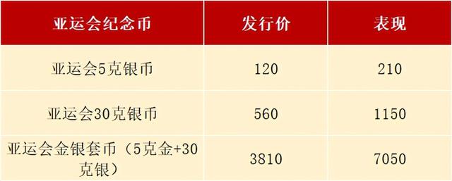 和發(fā)行價(jià)進(jìn)行對(duì)比,我們可以發(fā)現(xiàn),它們所有規(guī)格都差不多翻倍了。 只是百科網(wǎng)還是要提醒大家,如今亞運(yùn)會(huì)紀(jì)念幣正處于最風(fēng)光的階段。但我們要注意的是,等亞運(yùn)會(huì)結(jié)束之后,熱度就會(huì)逐漸冷卻,它們后續(xù)很難維持。