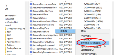 3、在右邊新建一個(gè)“DWORD 32”位的文件