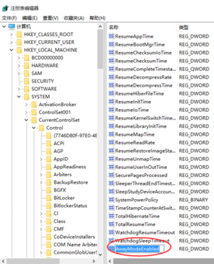 9、如果不想運(yùn)用這個(gè)離開模式,可以進(jìn)入將AwayModeEnabled刪除。 |