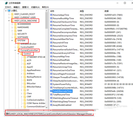 2、依次展開[HKEY_LOCAL_MACHINE\SYSTEM\CurrentControlSet\Control\Session Manager\Power]
