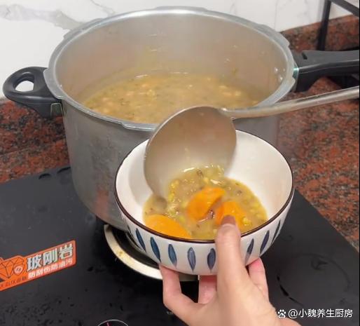 第四步:準備好煲湯的砂鍋或高壓鍋(高壓鍋能夠節省時間),將鍋底清洗干凈,放入綠豆,花生,百合和紅薯,加上適量純凈水,蓋上鍋蓋燉煮一會兒(高壓鍋只需要燉煮20分鐘) 第五步:放入老冰糖或紅糖,燜煮至冰糖融化,綠豆基本上煮熟了,關火盛出,放涼就可以食用了,也可以放入一些冰塊,這樣喝起來更涼快一些,夏季可以嘗嘗。 紅薯花生綠豆粥的制作小貼士:首先,關于選材。選擇新鮮、無蟲眼、無破損的紅薯,這樣的紅薯口感更甜,煮出來的粥也會更加美味。花生最好選擇帶紅衣的,因為紅衣花生含有更多的營養成分。至于綠豆,則應該選擇飽滿、色澤鮮亮的,這樣煮出來的粥才會更香濃。 (www.ws46.com) 其次,關于烹飪過程。在煮粥的過程中,火候的掌握非常重要。開始時,可以用大火將粥快速燒開,然后轉為小火慢慢熬煮。這樣可以使粥的口感更加細膩,營養成分也更容易釋放出來。同時,煮粥的過程中要時刻關注粥的濃稠度,根據個人口味適時添加清水,以免過稠或過稀。 再者,關于調味。紅薯本身帶有甜味,所以一般不需要額外添加糖。如果喜歡更甜一些,可以適量加入冰糖。此外,也可以在粥快煮好的時候加入一些枸杞或紅棗,增加粥品的營養價值和口感層次。 最后,關于搭配。紅薯花生綠豆粥可以作為早餐、午餐或晚餐的主食,搭配一些清淡的小菜或水果,既營養又美味。此外,在寒冷的冬天,喝上一碗熱騰騰的紅薯花生綠豆粥,還能起到驅寒暖身的作用。 總之,制作紅薯花生綠豆粥并不難,只要掌握了這些小貼士,就能輕松煮出一碗營養美味的粥品。快來試試吧!