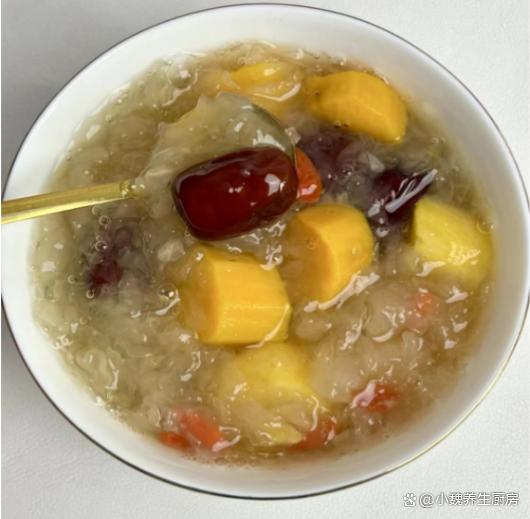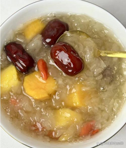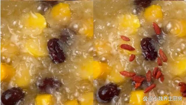 5:繼續燉煮15分鐘,放入一些老冰糖,丟入一些枸杞子,小火煮一會兒即可,這款紅薯紅棗銀耳羹就制作完成了。 總之,紅薯紅棗銀耳羹是一款美味營養的健康佳品。只要我們掌握了正確的制作方法和小貼士,就能夠輕松制作出口感滑潤、香甜可口的紅薯紅棗銀耳羹,為我們的生活增添一份健康和美味。 你們是否喝過這款紅薯紅棗銀耳羹呢?(文中配圖都出自網絡)(www.wS46.com)