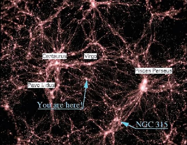 呈現出了復雜的纖維網狀結構而銀河系只是宇宙長城中的一粒沙子。