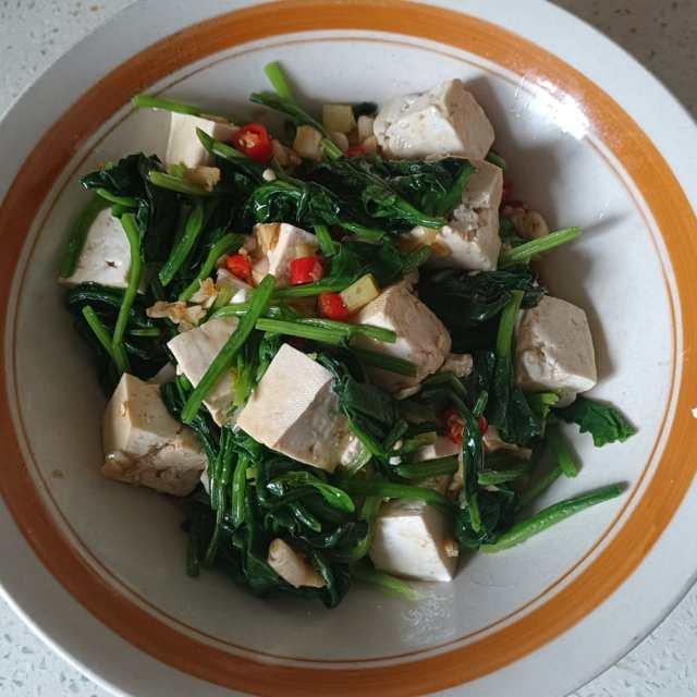 準備材料:春菠菜洗凈,切成段;嫩豆腐切成塊;大蒜切末備用。 燙菠菜:將春菠菜放入沸水中燙熟,撈出瀝干水分。 拌制:將燙好的春菠菜、嫩豆腐、蒜末放入碗中,加入適量鹽、生抽、香油,輕輕攪拌均勻。 裝盤:將拌好的春菠菜和豆腐裝入盤中,即可食用。 小貼士: