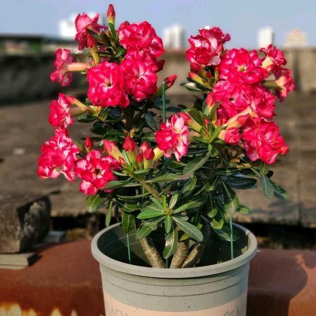 3、沙漠玫瑰 沙漠玫瑰是家里最好的盆栽,我自己也養過不少盆,可是到了冬季,卻沒有一盆能夠成活。 沙漠玫瑰種類繁多,花色艷麗,花期持久,只要照顧好,春夏秋冬都能看到,由于個頭大,枝條上開滿了花,深受人們的喜愛。 想要養得好,就得先把它種在一個小盆中,和它配合起來,讓它變得更加漂亮。 這小盆中的泥土非常的稀少,根本就不怕被淹,也不怕爛掉。 只要給它適當的肥料,它就可以生長,但是要多開花,磷肥、鉀肥是必不可少的,但一定要掌握好量。在花期,磷酸二氫鉀應每隔10天噴灑一次。