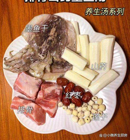 轉眼就到了春季初期,冬天從名義上結束了,但是寒潮沒有結束,冷空氣還在影響南方的天氣,據說這幾天南方還有凍雨,要等到3月份才會春天。春天是一年的開端,春季給人溫暖的感覺,這個時候經歷了冬天的考驗,我們的身體非常乏力,精氣神特別差,許多人被失眠困擾,各項機能都減退。春季是非常重要的“進補良機”,平常可以補充大魚大肉,也要嘗嘗這款家常湯品——山藥墨魚干蓮子燉排骨湯,每周吃幾次,湯品太鮮美了。“春季多喝湯,龍年更健康”,平常要多喝這湯,補足營養身體好。