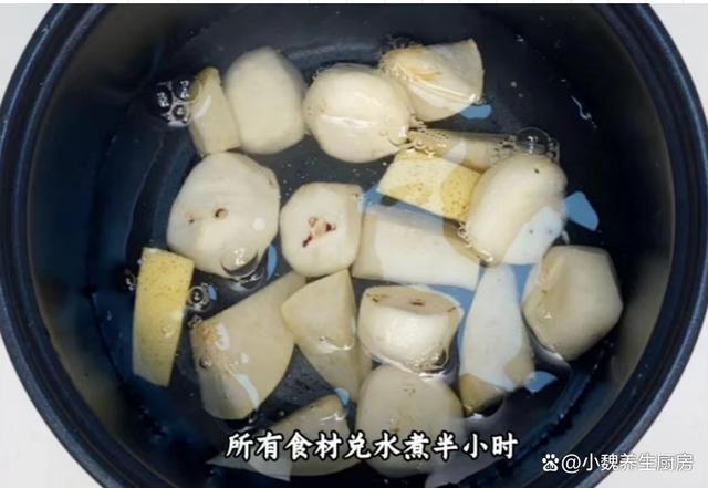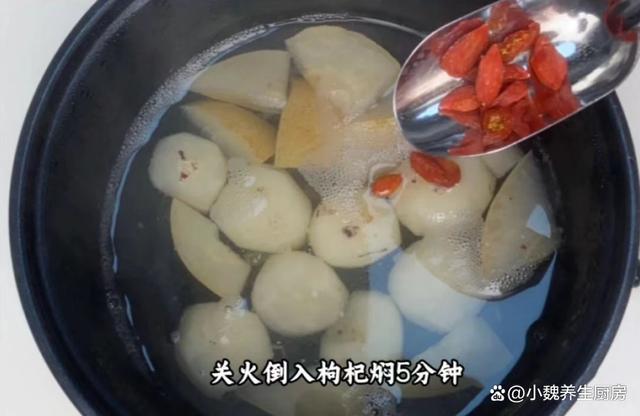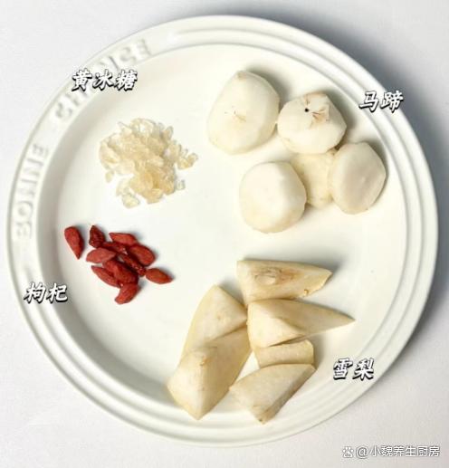 已經(jīng)到了2月最后一周,元宵節(jié)已經(jīng)到了,春天還會遠(yuǎn)嗎?上周一周在下雪,遇上難得一遇的凍雨天氣,這個(gè)時(shí)候的天氣非常惡劣,尤其是雪融化的時(shí)候,天氣會非常陰冷,早晚的溫差特別大,身體非常虛弱無力,許多疾病會找上門,出現(xiàn)感冒咳嗽的情況。  進(jìn)入春季以后,正是流感高發(fā)的時(shí)候,尤其是老人和孩子,抵抗力非常差,經(jīng)常出現(xiàn)咳嗽的癥狀,咳嗽久咳不止,一定要多穿一些衣服,少出門閑逛,避免摔倒和著涼了。春季以后,身體容易缺水,干燥易上火,平常要多吃高水分的水果,比如說雪梨和馬蹄等等。今天準(zhǔn)備用雪梨,馬蹄和陳皮制作一款水果甜湯——馬蹄雪梨枸杞湯,簡單煮一鍋,喝起來很甜美,不懂吃太可惜了。咳嗽最怕喝“這湯”,春天要多喝這湯,止咳清肺,增強(qiáng)免疫力。 【馬蹄雪梨枸杞湯的詳細(xì)做法】 食材明細(xì):選購100克馬蹄果(馬蹄果是一種地下的水果,外形與馬蹄相似,果皮為深褐色,果肉清甜多汁,維生素含量很高,可以直接當(dāng)成水果,煮熟后營養(yǎng)價(jià)值倍增),挑選1-2個(gè)(雪梨是一年四季都能吃到的水果,雪梨被稱為“止咳之王”,水分會非常足,清甜可口,水分特別足,對于輕度感冒和咳嗽有好處),冰糖12克左右,幾片陳皮,溫水和純凈水少許,食鹽少許,其他。 具體制作順序: 1:提前準(zhǔn)備好馬蹄果,雪梨和枸杞子等食材,先把馬蹄放在盤中,用清水沖洗掉泥土,用刨子去掉外皮和多余的部位,馬蹄果很容易氧化,可以用清水或鹽水泡一泡。 2:將雪梨放在容器中,果皮表面撒上一丟丟食鹽,搓洗幾次,用流水沖洗干凈,也可以直接去皮,去掉果核,切成一些塊狀,備用。3:陳皮用溫水泡發(fā),刮掉一層白瓤,切成長條細(xì)絲,枸杞子用冷水沖洗干凈,準(zhǔn)備好雪梨塊和馬蹄,開始制作這款馬蹄雪梨枸杞湯吧。 4:提前準(zhǔn)備好一個(gè)煲湯的湯鍋,鍋中放入雪梨塊,馬蹄果和陳皮,加上純凈水足量,記得一次性要多一些。 5:蓋上鍋蓋大火燜煮,等待食材煮至熟透,也可以放入一些紅棗,加上一些老冰糖,熬制羹湯非常濃稠。6:最后丟入洗凈的枸杞子,燜煮一小會兒,關(guān)火放到常溫,這款馬蹄雪梨枸杞湯就制作完成了。 馬蹄雪梨枸杞湯是一款甘甜美味的水果甜湯,主要選用雪梨,馬蹄和陳皮一起煮,發(fā)揮食材的最大作用,止咳效果很出色,潤肺清咽,預(yù)防感冒和咳嗽,讓你免受疾病的困擾,還為我們身體提供許多能量。