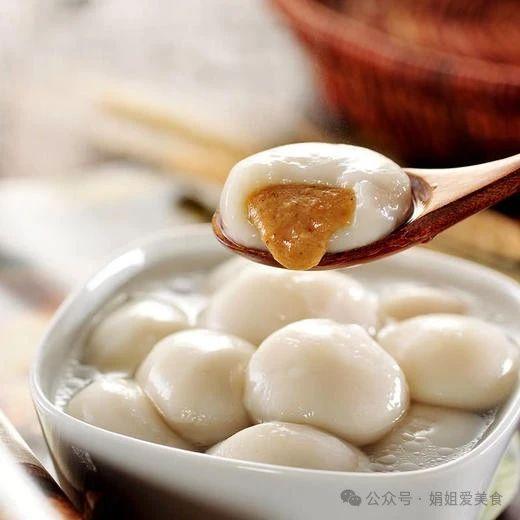第二種:花生湯圓材料:糯米粉、花生、白糖、豬油。 做法: 花生炒熟后去皮,磨成花生醬,加入白糖和融化的豬油拌勻成餡料。 糯米粉加入適量水和成面團(tuán),揪成小劑子,包入花生餡,搓成圓形。 鍋中加水燒開,放入湯圓煮至浮起,再煮2-3分鐘即可。 寓意:花生湯圓寓意著生活的豐富多彩和家庭的繁榮昌盛。