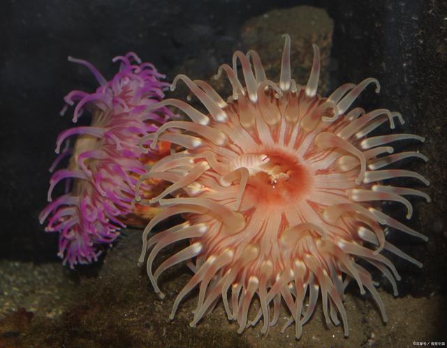 此外,海葵的生殖特征也非常不同尋常。在它們的多種不同分支中,會有一些選擇其他動植物的方法進行繁殖。比如,某些分支的海葵就能夠將自己轉換成像植物那樣的固體結構,從而增加自己的周圍體積,吸取更多的養分并吸引小型無脊椎動物來接近。而這些小型無脊椎動物則會在接近海葵時被其強大的毒液所殺死,從而成為海葵的食物和卵子的傳遞工具。