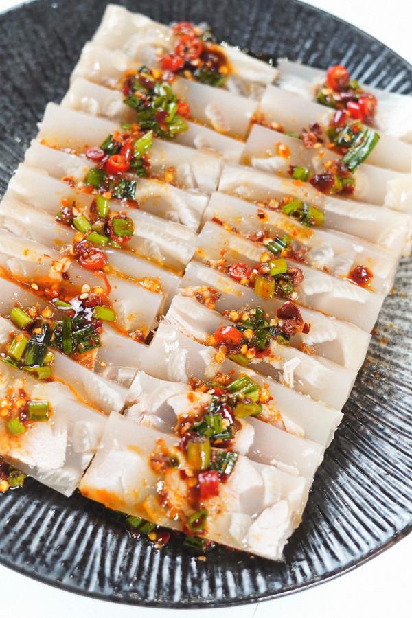 烤豬皮是一道香脆可口的美食。將處理干凈的豬皮切成小塊,用鹽、黑胡椒、生抽腌制片刻,然后放在烤盤上烤至金黃酥脆。搭配檸檬汁和蔬菜一起食用,味道更佳。 3. 豬皮凍 豬皮凍是用豬皮經(jīng)過熬煮制成的傳統(tǒng)美食。將處理干凈的豬皮切成小塊,加入姜片、料酒焯水后撈出。然后將豬皮放入鍋中,加入足夠的水,小火熬煮至湯汁濃稠。最后將湯汁倒入容器中冷卻凝固,即可食用。可以根據(jù)個人口味加入蔥段、花椒等調(diào)料提升口感。