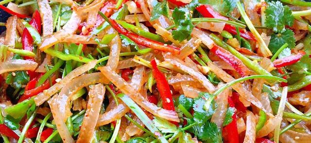 在選購豬皮時,應(yīng)選擇色澤鮮亮、無異味的豬皮。處理豬皮時,首先要將表面的毛刮干凈,然后放入開水中焯燙,刮去油脂和污物。焯燙后的豬皮應(yīng)立即用清水沖洗干凈,然后根據(jù)需要進(jìn)行切割或切絲。 三、豬皮的美味做法 1. 涼拌豬皮