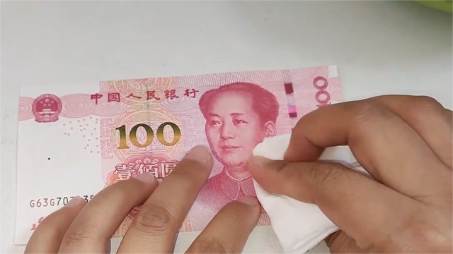 2,擦拭紅色掉色。準(zhǔn)備一張白紙,在鈔票的衣領(lǐng)處(即毛主席頭像下方)輕輕擦拭幾下。如果發(fā)現(xiàn)有輕微的紅色掉色現(xiàn)象,那么這張鈔票很可能是真鈔。這是因為真鈔在印刷過程中使用了特殊的油墨,具有一定的掉色性。反之,如果擦拭后沒有任何掉色現(xiàn)象,那么這張鈔票就極有可能是假的。