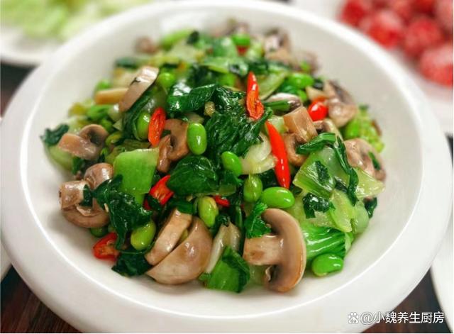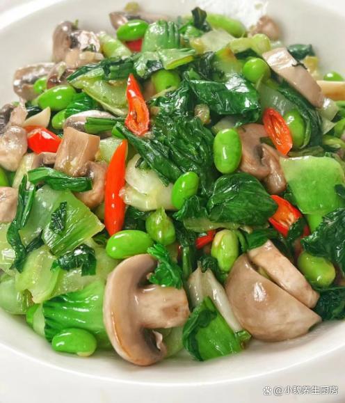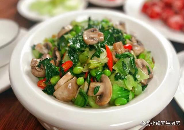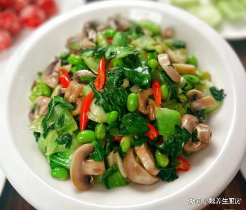 進入2023年的12月份,每個人對于冬天的理解不一樣,不管是南方還是北方,到了數九寒天,都要經歷一年之中最寒冷的時候,都要經受寒潮和雨雪天氣的考驗,北方溫度甚至低于零下十幾度,南方城市的天氣也接近冰點。雖然兩者的氣候特點不一樣,但是我還是無法接受南方的濕冷,讓人渾身都無力,臉部被凍傷了,感覺做啥事情都沒有力氣,胃口還特別差?,F在天氣太冷了,除了點外賣之外,基本上就是在家做飯吃,簡單給家里人做三菜一湯,吃起來營養又健康。今天分享一道我們家的拿手菜——上海青毛豆炒口蘑,菜色非常好看,解饞開胃,一家人都愛吃。冬季,別總吃大魚大肉,多給家人吃這菜,營養美味,總吃不膩!  【上海青毛豆炒口蘑的食譜解析】 準備一些食材:選購上海青200克左右(上海青是一種南方最常見的小青菜,家家戶戶都愛吃,葉片為嫩綠色,口感特別清脆爽口,葷素都能夠搭配,吃起來特別美味),豬油一大勺,若干個大蒜頭,新鮮青皮毛豆100克,選購150克新鮮口蘑(口蘑是一種鮮嫩美味的白色蘑菇,素有“菌中山珍”之稱,菌菇非常鮮嫩,菌蓋非常光滑圓潤,清甜解膩,經??梢杂脕沓词郴蛑鬁?,冷水少許,大蒜頭少許,幾個小米辣,食用油少許,雞精和味精少許,生抽和蠔油少許,其他。 正確制作順序: 第一步:提前準備好上海青,毛豆和口蘑等食材,先把上海青的葉子剝下來,老一點的根莖切掉,切成若干小塊,備用。 第二步:將口蘑的根部切掉,反復清洗干凈,切成若干片狀,將青皮毛豆剝掉外殼,反復沖洗幾遍,毛豆和口蘑都可以焯水處理,最后控干表面的水分。 第三步:大蒜用刀拍扁,大蒜頭切碎成蒜末,小米辣洗凈切成小段,準備好三種食材,開始烹飪這道上海青毛豆炒口蘑吧。 第四步:鍋底加上少許食用油和豬油,將豬油都融化開,炒出來的菜肴更香一些,倒入蒜末,姜末和小米辣,大火快速爆炒出香味。 第五步:倒入一些口蘑片炒至變軟,倒入毛豆和上海青,調到大火快速煸炒,將其炒至斷生。 第六步:加上少許食鹽和白糖,加上雞精和其他佐料,調入生抽和蠔油少許,鍋邊淋入少許清水(記得不要加太多),用鍋鏟翻炒幾下,收汁出鍋,這道上海青毛豆炒口蘑就烹飪完成了。 上海青毛豆炒口蘑是一款清爽解膩的美食,主要選用了上海青,毛豆和口蘑制作而成,口蘑十分鮮嫩美味,菜色非常清爽,營養非常豐富,更加利于營養的消化,孩子和老公都喜歡吃。
