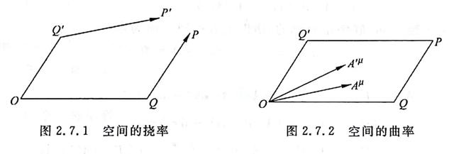 人的渺小對比地球之大,我們所生活的表面確實可以看成是曲率為0的平面,但這離真相還相差十萬八千里。為了更好地利用上述數學知識來揭開真相,我們需要避免讓三角形只存在于局域之中,而是盡量讓它處于全局之中,這樣才能發現三角形的內角和并不等于180度,我們所生活的表面是曲率不等于0的曲面。二維生物也要注意到這個細節,他們才能得出真相。 事實上,空間除了彎曲之外,還可以扭曲。彎曲用曲率來表示,扭曲用撓率來表示。如下圖所示,有OQ和OQ'兩個向量,它們分別沿著對方的方向平移,如果空間存在扭曲,則平移后的P點和P'點并不會重疊在一起。