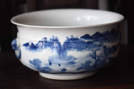翠毛藍瓷器指的是青花瓷器中的一種發色,只出現在康熙青花瓷器上,因此翠毛藍民窯瓷器上的胎釉常見縮釉、粘砂、不光滑等現象,官窯則常見釉薄泛白的現象,并且翠毛藍瓷器上所繪制的圖案也以山水、花鳥魚、人物等為主。 2、底足