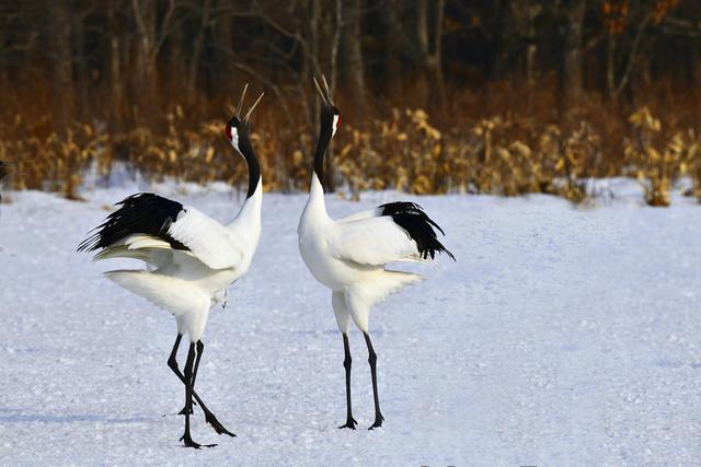 丹頂鶴主要分布在東亞地區(qū),包括中國、日本、朝鮮、韓國、蒙古和俄羅斯。它們喜歡生活在開闊的濕地和沼澤地,以魚類、蝦類、昆蟲等為食。它們每年都會(huì)進(jìn)行遷徙,從越冬地飛到繁殖地。 丹頂鶴是一種忠誠和親密的動(dòng)物,它們一生只會(huì)選擇一個(gè)伴侶,并且經(jīng)常進(jìn)行儀式性的求愛舞蹈。它們每次只會(huì)產(chǎn)一個(gè)或兩個(gè)蛋,并且共同孵化和撫養(yǎng)幼鳥。幼鳥出生后需要三年才能成熟。