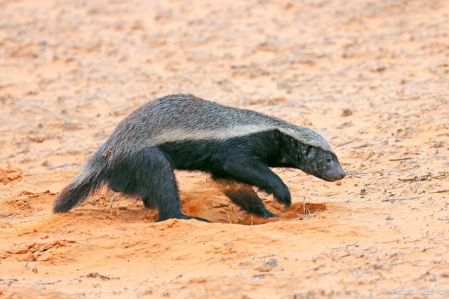 蜜獾有著短而厚實(shí)的毛發(fā),在陽光下呈現(xiàn)灰色到黃色,胸部和腿部有白色條紋。它們的后爪和前爪都很強(qiáng)壯,能夠挖掘出大型的洞穴。蜜獾最顯著的特征是強(qiáng)大、鋒利的獠牙,能夠輕松地撕開各種堅(jiān)果、昆蟲和小動(dòng)物軀體。 蜜獾是單獨(dú)行動(dòng)的動(dòng)物,但有時(shí)也會(huì)組成小族群,在一起打獵和共同保護(hù)領(lǐng)地。它們更多的是在黃昏、夜晚活動(dòng),因?yàn)樵谶@些時(shí)間里許多獵物開始出現(xiàn)。 蜜獾主要以昆蟲、蜜蜂和野獸的肉類為食。它們會(huì)使用它們強(qiáng)大的嗅覺找到蜂巢或其他昆蟲家族的巢穴,并使用它們的獠牙輕松地進(jìn)入并摧毀入侵目標(biāo)。但是,蜜獾對(duì)于植物和水果也有很高的消化道適應(yīng)性,偶爾也會(huì)取食這些食物。