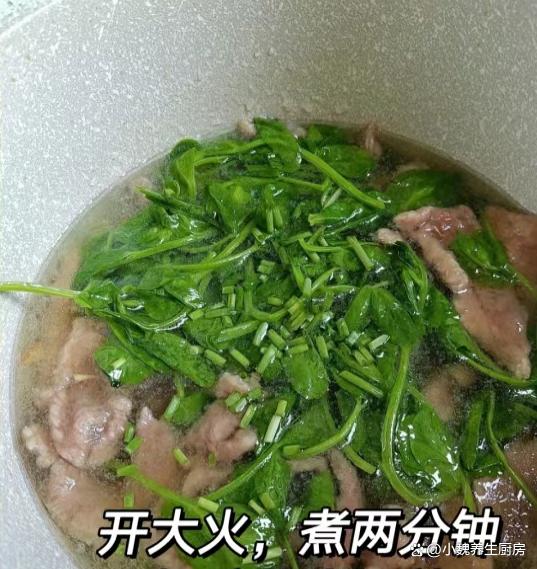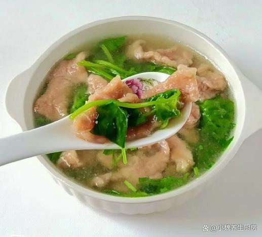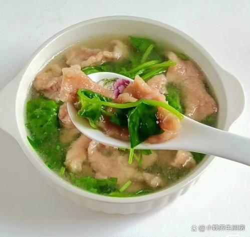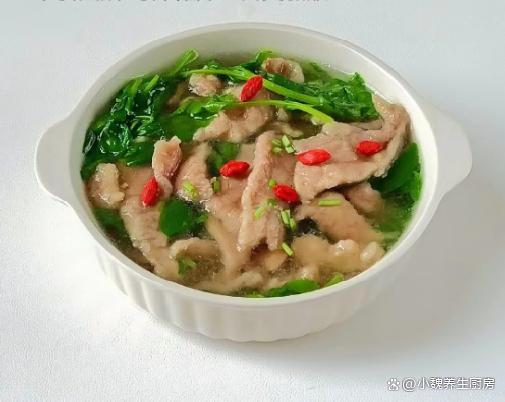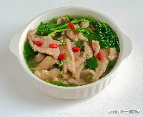 一明目,二養肝,三排毒,冬天要多喝這湯,營養全面,不懂吃可惜了。轉眼之間,已經到了11月份,到了11月8日之后,要迎來冬天的第一個節氣——立冬,象征著冬天要正式開始,是冬天開始進補的時機,為身體儲備各種營養。由于天氣變冷了,氣溫已經降至到10攝氏度,早上起霧起霜,晚上非常陰冷潮濕,身體容易著涼,身體體質差,缺乏大量的營養,不能抗住今年的冬天。立冬是很多長輩們重視的時候,立冬要多喝湯,因為更容易消化和代謝,幫助減少疾病發生,早食早受益。今天上超市選購一把豌豆尖,準備換一換新吃法——豌豆尖肉片,豌豆尖和豬肉簡直是絕配,肉片巨嫩滑,湯汁非常清淡,我們一家人都愛喝。立冬前后,無論多忙,多給家人喝這湯,補鈣質,安穩度過冬天。  【豌豆尖肉片湯的具體做法】 挑選一些食材:挑選新鮮豌豆尖200克(豌豆尖又叫龍須菜,是一種嫩綠的時令蔬菜,被稱為秋季第一菜,比蘿卜和白菜更受歡迎,不僅僅能夠素炒,還可以用來煮湯,為身體補鈣補鐵,好處多多),豬油一大勺,冷水和開水若干,選購新鮮前腿肉半斤(豬肉分為前腿肉和后腿肉,前腿是經常活動的部位,肉質更加嫩滑,價格也便宜一些,我們家喜歡用來下火鍋或煮湯),兩大勺淀粉,生姜若干片,少許食鹽,生抽少許,橄欖油少許,雞精半勺,枸杞子15克左右,少許白胡椒粉,其他。 正確做法: 1:提前購買好新鮮前腿肉和豌豆尖,先把前腿肉的多余部位去掉,我們家人都不吃肥肉,瘦肉用冷水浸泡洗凈。 2:瘦肉可以做成許多美食,瘦肉一定要提前腌制好,瘦肉改刀順紋切成薄片,肉片放在碗中,加上一些姜絲和蔥姜水,加上一勺食鹽調味,調入一勺生抽,加上半勺蠔油,裹上少許淀粉,用手快速抓拌,肉片充分腌制好,肉片特別鮮嫩。3:豌豆尖的根部和黃葉去掉,豌豆尖反復洗干凈,掐成兩半,控干葉片的水分,枸杞子用流水沖洗掉灰塵,準備好豌豆尖和腌制好的肉片,開始制作這道豌豆尖肉片湯。 4:鍋底調入橄欖油和豬油,讓豬油融化開,倒入蔥白和姜末炒香,加上適量開水,再次煮至沸騰。