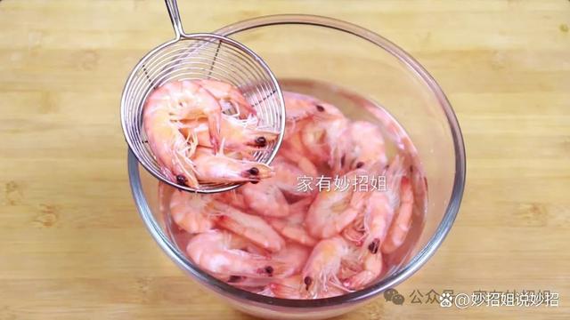第三步:過涼。 在煮蝦的過程中,我們再另外準備一碗冷水,要是家里有冰塊的,也可以放點冰塊。當蝦煮好時,我們就快速地將蝦撈起來放入這個冰水中過涼。熱的蝦突然遇到冰水就會快速的縮緊,也就是熱脹冷縮的原理,這樣蝦的肉質就會變得緊致又Q彈了。不過要是不喜歡吃冷的,我們就不需要操作這一步,直接把它裝在盤里就可以了。