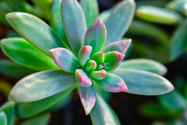 第八步:觀察調整 修剪后的多肉植物需要觀察調整,根據其生長情況及時調整養護措施。如果修剪后的植株生長狀況良好,可以適當增加澆水和施肥量,促進其生長。如果生長狀況不良,要及時調整光照、溫度和濕度等環境因素。 根據植物生長情況來決定修剪方式:如果多肉植物出現徒長現象,可以將徒長的枝條剪掉,使植株保持緊湊的形態。同時,也可以將剪下的枝條扦插繁殖,增加新的植株。 如果多肉植物的葉子枯黃或脫落,可能是由于光照不足、水分過多或養分不足等原因引起的。這時要及時剪掉枯黃或脫落的葉子,并調整養護措施,以保證植株健康生長。 如果多肉植物的根系過多或過密,需要移栽換盆時,可以在修剪時一起進行。將多肉植物從原盆中取出,輕輕去除舊土,修剪過長的根系或交叉根系,然后移植到新的盆土中。注意不要傷害主根,保持根系完整。