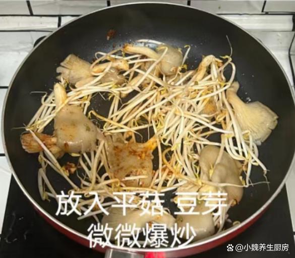 4:鍋底燒熱,調入少許食用油,加上蒜末和辣椒面,迅速爆炒出香味,放入平菇和豆芽菜,快速煸炒一會兒。 5:加上兩大碗清水,蓋上鍋蓋煮幾分鐘,然后調到小火,腌制好的肉片均勻下鍋,讓牛肉片煮到變色,用筷子攪動幾下。 6:加上一小勺生抽和蠔油,調入雞精半勺,加上食鹽和其他佐料,燜煮一小會兒,放入蔥花即可,這道平菇豆芽菜滑肉湯就烹飪完成了。 平菇豆芽菜滑肉湯是一 款營養解饞的菜肴,主要采用豆芽菜,平菇和牛肉制作而成,湯汁特別濃郁,肉片十分爽滑細嫩,營養超級出色,非常適合秋冬季節食用,早食早受益。 小伙伴們,你們是否吃過這道平菇豆芽菜滑肉湯呢?(文中配圖都來自網絡)