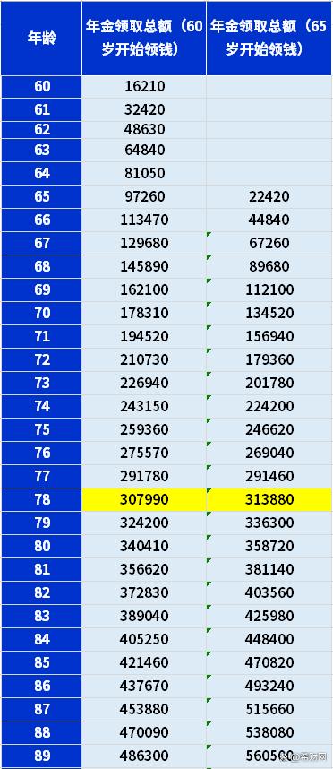可以看到,如果選擇從60歲開始領錢,雖然每年領取的年金較少,但因為能更早地領錢,所以前期領取的年金總額反而更多。直到78歲之后,65歲開始領錢的年金總額才會超過60歲開始領錢的年金總額。 正因如此,如果自身的健康狀況比較好,覺得能活得比較長,并且至少能活到80歲以上,那么就是越晚領錢就越好,而如果是健康狀況不佳,就是越早領錢越好。