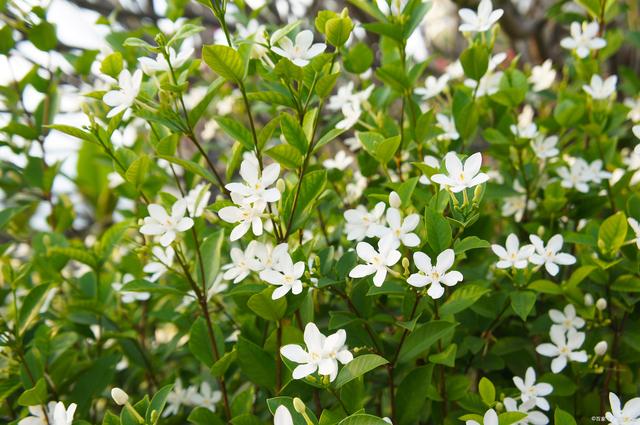 二、合理澆水(www.Ws46.com) 合理澆水是茉莉花盆栽養殖的關鍵。茉莉花喜歡濕潤的環境,但也不能過度澆水。在生長期,應保持土壤濕潤,但避免積水;在花期,要適當增加澆水次數,以保持花朵新鮮。同時,還要注意葉面噴水,保持空氣濕度,有利于茉莉花的生長和開花。 三、適當施肥 茉莉花需要充足的養分才能茁壯成長。在生長期,應適當增加氮肥的施用量,以促進葉片生長;在花期前,應適當增加磷鉀肥的施用量,以促進花朵的發育。同時,還要注意適時追肥,根據植物生長情況和季節變化,適量補充肥料。 四、修剪和整形 適當的修剪和整形有利于茉莉花的生長和開花。在生長期,應及時摘除過密的枝條和黃葉,保持植株通風透光;在花期前,可以適當修剪殘花和弱枝,促進植株的生長和開花。修剪時要使用干凈的剪刀,避免傷口感染病菌。