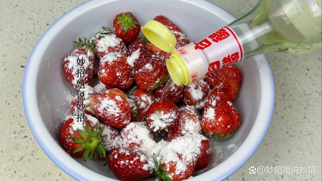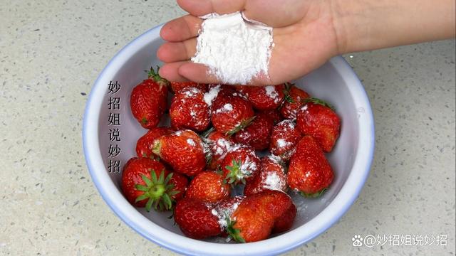 接著,我們進(jìn)入第二步,準(zhǔn)備一把面粉。面粉因其天然的吸附特性,能夠有效地幫助去除附著在草莓表面的頑固污垢。將面粉直接均勻地撒在已經(jīng)沖洗過的草莓上。