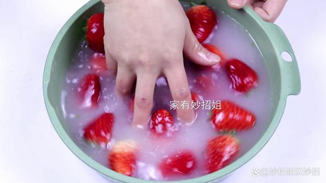 大概攪拌上兩三分鐘的樣子,我們將這個臟水倒掉,然后用清水漂洗幾次,把上面的殘留漂清,這樣草莓就清洗好了,干干凈凈的。這是因為面粉具有很好的吸附作用,它可以有效的將草莓表面的臟東西都吸附到水中;而食鹽則具有殺菌消毒的作用,有助于將草莓表面的一些蟲卵之類的消滅;小蘇打是呈堿性的,它可以很好的溶解草莓表面殘留的農藥。經過這樣清洗過的草莓,既干凈又衛生,將草莓蒂一摘,就可以開吃了。