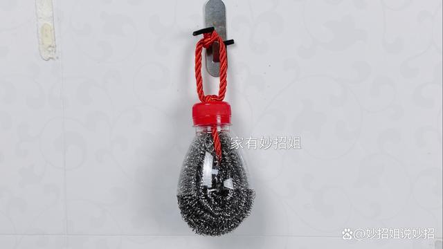 當鋼絲球使用完后,還可以將后面的繩子掛在水龍頭上,或者在墻壁上粘個掛鉤,把鋼絲球掛在上面,瀝水收納兩不誤。如果今天的文章對您有幫助,那就點一個關注,點一個贊,感謝您的支持。