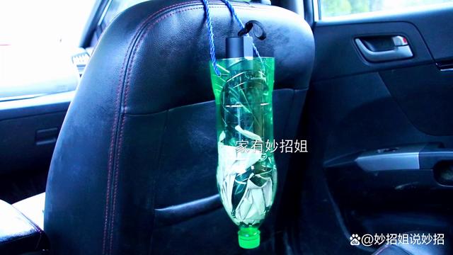 此外,我們還可以制作一個掛在車的后座位置,每次使用完的雨傘就放在里面,也就不會將車墊打濕,而且塑料瓶掛在座位后一點也不會占位置,用來收納雨傘也很方便。