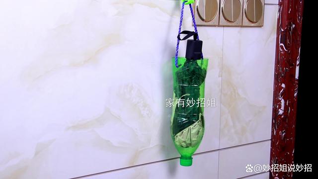 我們只需在家門口的位置粘個掛鉤,然后把制作好的塑料瓶掛在掛鉤上,這樣拿回家的雨傘就可以直接放在塑料瓶里面收納,也就不用擔心雨水會滴得到處都是了。