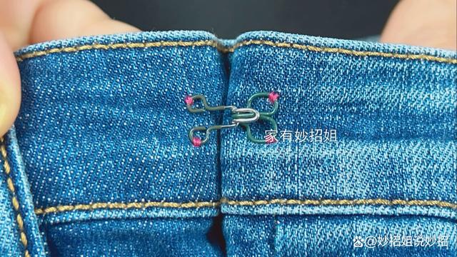 遇到這種問題,我們不需要去店里維修,只要利用上舊文胸上的掛鉤就能解決了。先將掛鉤分別用針線固定在牛仔褲的兩邊。