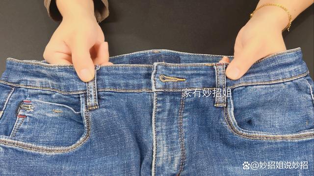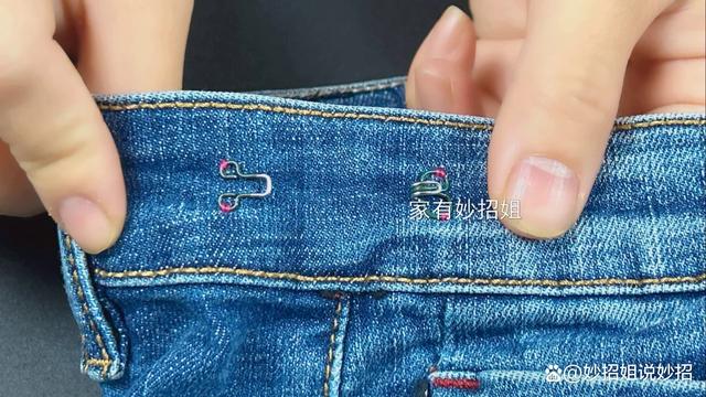 這樣我們再穿褲子的時候,只要把掛鉤扣好,褲腰就變小了,也就更加的貼合身形了。如果褲腰緊的話,我們將掛鉤解開,褲腰又恢復了原樣。