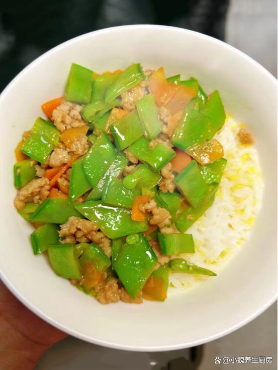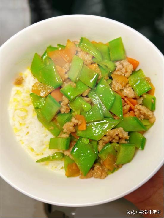 步驟5:鍋底提前燒熱,加上蔥姜蒜爆香,倒入胡蘿卜和荷蘭豆炒至斷生,將食材推在一邊。 步驟6:倒入腌制好的豬肉末,將其炒至色澤變白,倒入調(diào)好的水淀粉(生抽,蠔油,淀粉和清水),用鍋鏟翻炒均勻。 步驟7:大火收汁,加上食鹽和雞精等調(diào)味品,裝盤出鍋,這道荷蘭豆胡蘿卜炒肉末就烹飪完成了。 荷蘭豆胡蘿卜炒肉末是我們兒子超愛吃的菜肴,菜色好看,清甜解膩,葷素搭配,營養(yǎng)又美味,其中含有維生素和胡蘿卜素,里面的膳食纖維含量高,加速腸道的運(yùn)動,減脂瘦身,保護(hù)眼睛,早食早受益。 小伙伴們,你們喜歡吃這道荷蘭豆胡蘿卜炒肉末嗎?(文中配圖都來自網(wǎng)絡(luò))