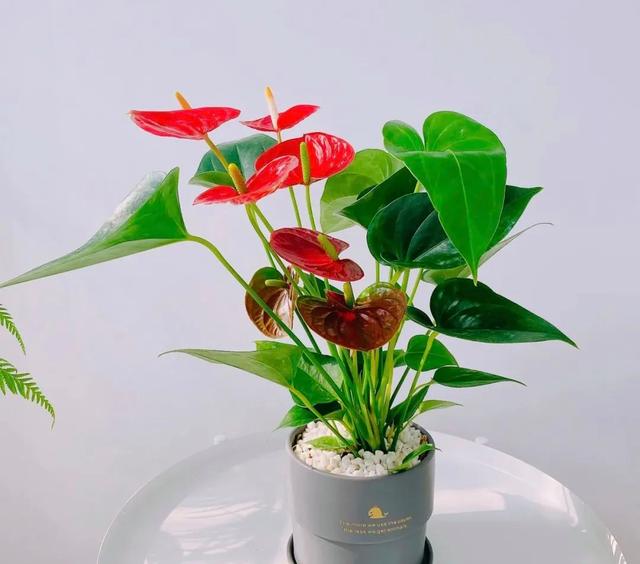 鐵線蕨是蕨類(lèi)植物中的一種,它的葉片乍一看非常的粗糙,但當(dāng)你用手去觸摸時(shí),就像美女的秀發(fā)一樣柔軟,有一種柔和的美,雖不張揚(yáng),卻十分耀眼。這樣的植物用獨(dú)有的方式,悄悄的展示著生命的韌性。可以將其布置在桌面和臺(tái)面,展現(xiàn)出一種生命的氣息。鐵線蕨喜歡生長(zhǎng)在明亮散光處,喜溫暖,喜潮濕,在澆水時(shí),建議大家把水澆到托盤(pán)里,這樣可以防止出現(xiàn)地中海的情況。 紅掌