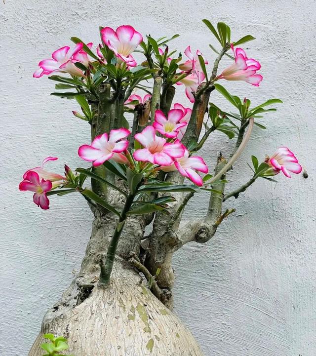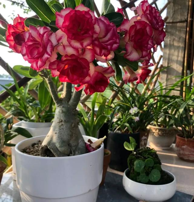 君子只蘭可以說是一種非常有質的植物,它的葉片挺拔,花色高雅,具有非常高的欣賞價值,可以布置在桌面和窗臺。它的花期是在秋冬季節,現在正值花期,喜歡不要錯過。它的花根雖然看起來比較粗壯,但是卻比較薄弱,適合生長在透氣,排水好的沙土里,比較洗干凈。如果你把它放在一個相對較小的盆里,便會有一種危機感,激發出生存的本能,盡情的生長開花。所以小盆憋著養,君子蘭會給你帶來意想不到的驚喜。 沙漠玫瑰