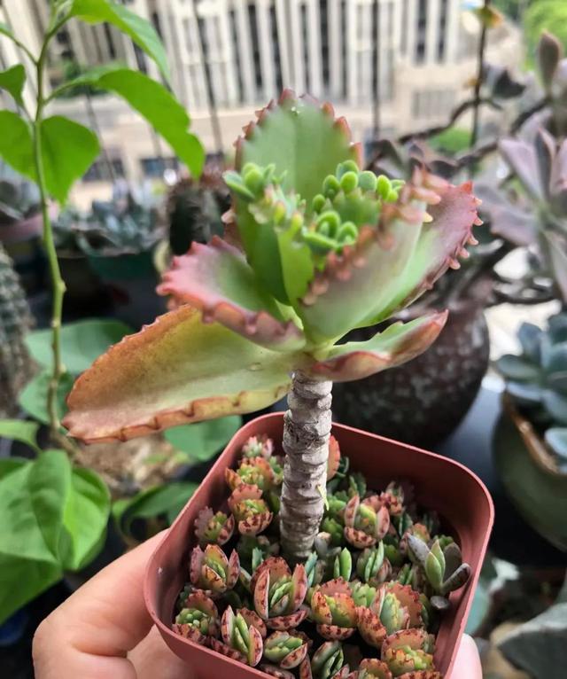 落地生根也叫不死鳥,它是一種多肉植物,它的葉片比較肥厚,葉片的邊緣有很多小葉片,看起來密密麻麻的,這對一些有密集恐懼癥的人群來說似乎并不友好,但這并不是它的缺點,往往是它的優(yōu)點,小葉片只要落到地面上,就能生根發(fā)芽,成為一個新的個體,生命力極其頑強。家里養(yǎng)一盆,似乎像是養(yǎng)了百盆一樣,越養(yǎng)越多,它的整體造型非常有個性,可以作為一種桌面盆栽培盆栽去培育。